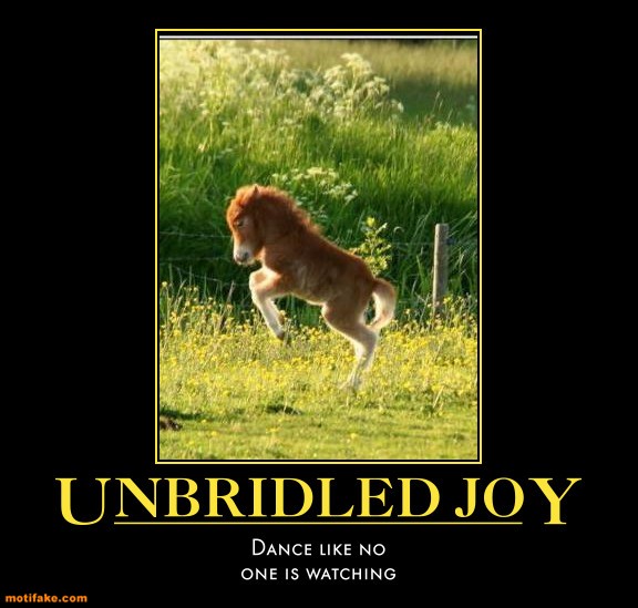 Unbridled Joy Ronnie no comments April 18, 2014 UNBRIDLED JOY Dance like no one is watching. Share this: Click to share on X (Opens in new window) X Click to share on Facebook (Opens in new window) Facebook Click to share on Pinterest (Opens in new window) Pinterest Click to share on Tumblr (Opens in new window) Tumblr Click to email a link to a friend (Opens in new window) Email Like Loading... Related