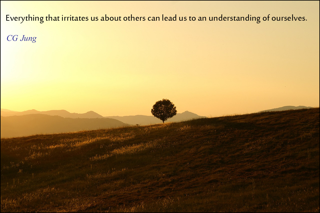 Understanding Ronnie 2 comments July 16, 2014 “Everything that irritates us about others can lead us to an understanding of ourselves.” C. G. Jung Share this: Click to share on X (Opens in new window) X Click to share on Facebook (Opens in new window) Facebook Click to share on Pinterest (Opens in new window) Pinterest Click to share on Tumblr (Opens in new window) Tumblr Click to email a link to a friend (Opens in new window) Email Like Loading... Related