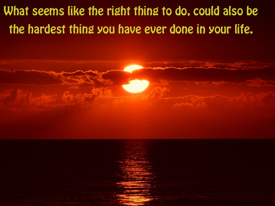 The Right Thing To Do Ronnie 3 comments July 26, 2014 What seems like the right thing to do could also be the hardest thing you have ever done in your life. Share this: Click to share on X (Opens in new window) X Click to share on Facebook (Opens in new window) Facebook Click to share on Pinterest (Opens in new window) Pinterest Click to share on Tumblr (Opens in new window) Tumblr Click to email a link to a friend (Opens in new window) Email Like Loading... Related