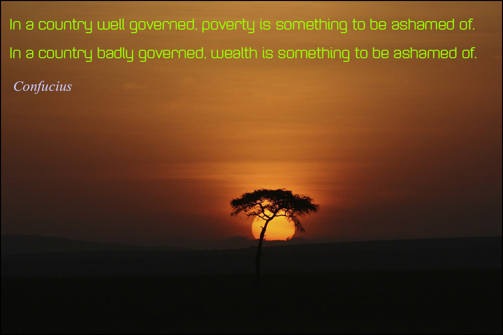 CountryIn a country well governed, poverty is something to be ashamed of. In a country badly governed, wealth is something to be ashamed of.