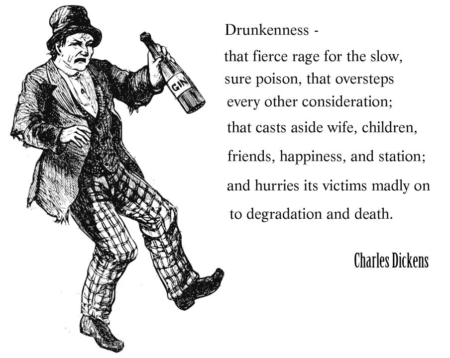 Drunkenness Ronnie no comments November 29, 2014 Drunkenness – that fierce rage for the slow, sure poison, that oversteps every other consideration; that casts aside wife, children, friends, happiness, and station; and hurries its victims madly on to degradation and death. Charles Dickens Share this: Click to share on X (Opens in new window) X Click to share on Facebook (Opens in new window) Facebook Click to share on Pinterest (Opens in new window) Pinterest Click to share on Tumblr (Opens in new window) Tumblr Click to email a link to a friend (Opens in new window) Email Like Loading... Related
