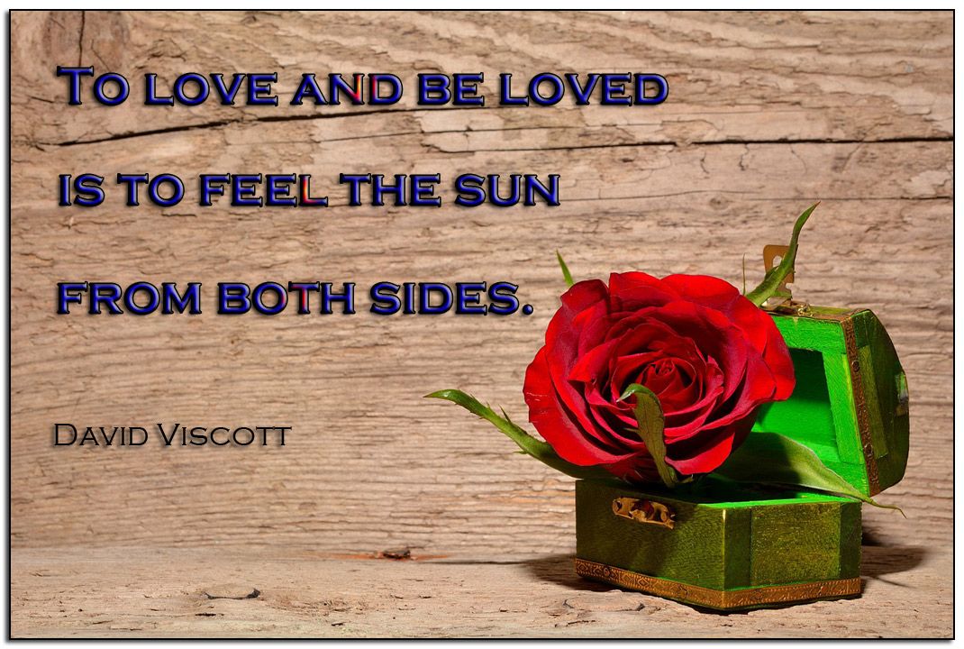 Both Sides Ronnie no comments January 4, 2015 “To love and be loved is to feel the sun from both sides.” David Viscott Share this: Click to share on X (Opens in new window) X Click to share on Facebook (Opens in new window) Facebook Click to share on Pinterest (Opens in new window) Pinterest Click to share on Tumblr (Opens in new window) Tumblr Click to email a link to a friend (Opens in new window) Email Like Loading... Related