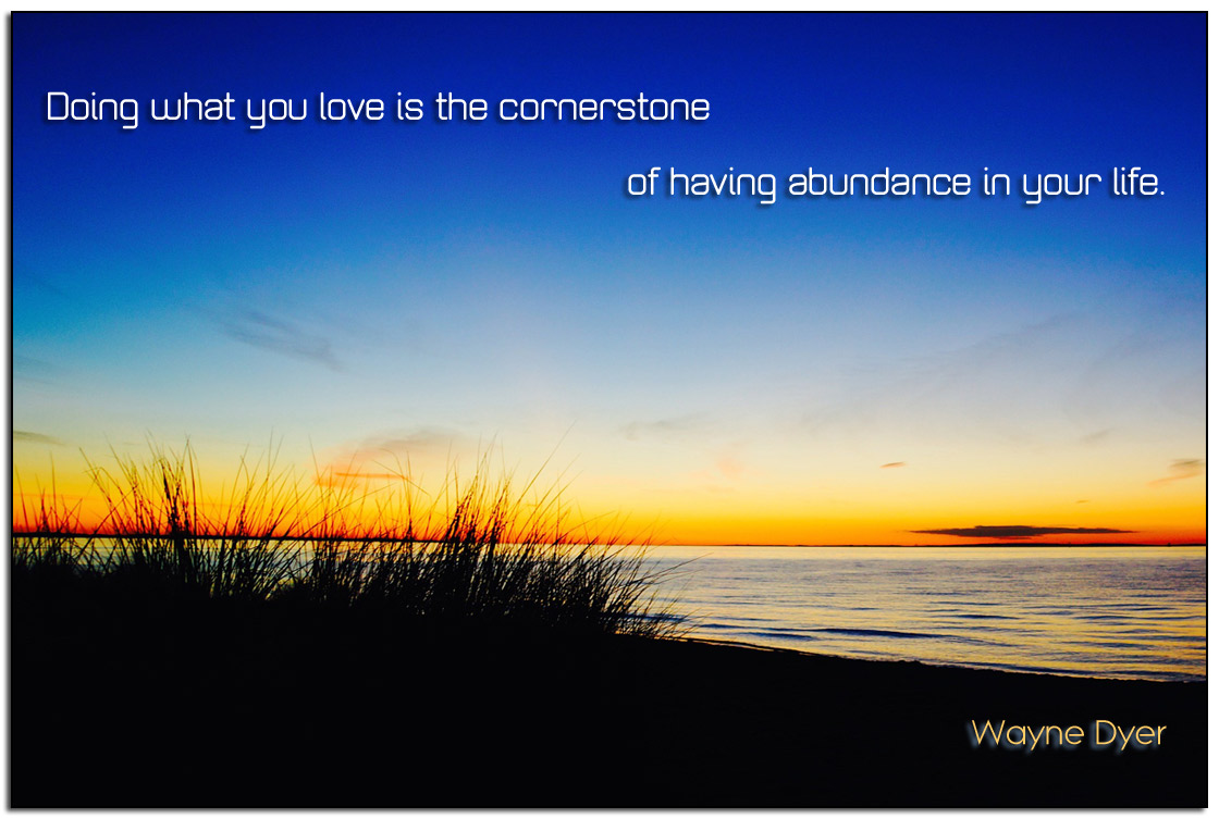 Cornerstone Ronnie 1 comment September 12, 2015 “Doing what you love is the cornerstone of having abundance in your life.” Wayne Dyer Share this: Click to share on X (Opens in new window) X Click to share on Facebook (Opens in new window) Facebook Click to share on Pinterest (Opens in new window) Pinterest Click to share on Tumblr (Opens in new window) Tumblr Click to email a link to a friend (Opens in new window) Email Like Loading... Related
