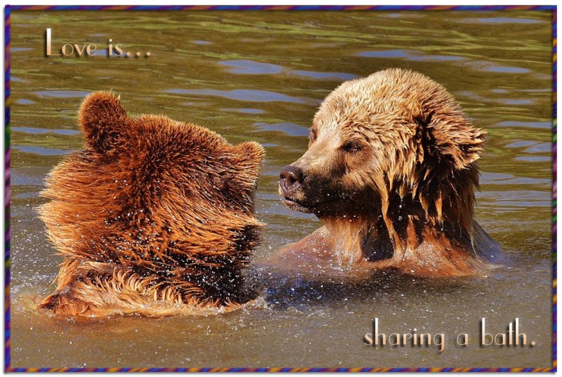 Love is… Ronnie 8 comments May 27, 2017 Love is… sharing a bath. Share this: Click to share on X (Opens in new window) X Click to share on Facebook (Opens in new window) Facebook Click to share on Pinterest (Opens in new window) Pinterest Click to share on Tumblr (Opens in new window) Tumblr Click to email a link to a friend (Opens in new window) Email Like Loading... Related