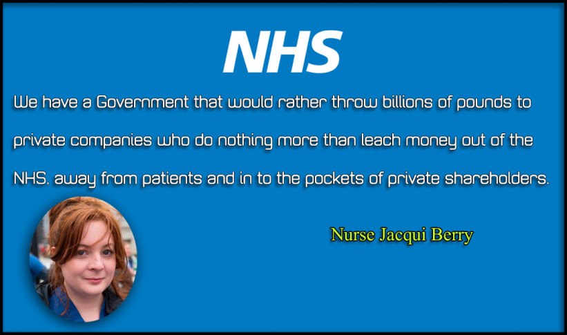“We have a Government that would rather throw billions of pounds to private companies who do nothing more than leach money out of the NHS, away from patients and in to the pockets of private shareholders.”