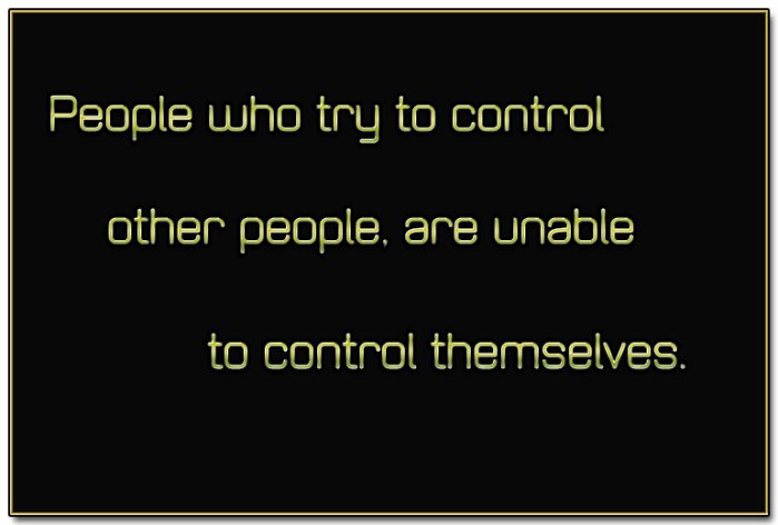 Control Ronnie no comments November 27, 2018 People who try to control other people, are unable to control themselves. Share this: Click to share on X (Opens in new window) X Click to share on Facebook (Opens in new window) Facebook Click to share on Pinterest (Opens in new window) Pinterest Click to share on Tumblr (Opens in new window) Tumblr Click to email a link to a friend (Opens in new window) Email Like Loading... Related