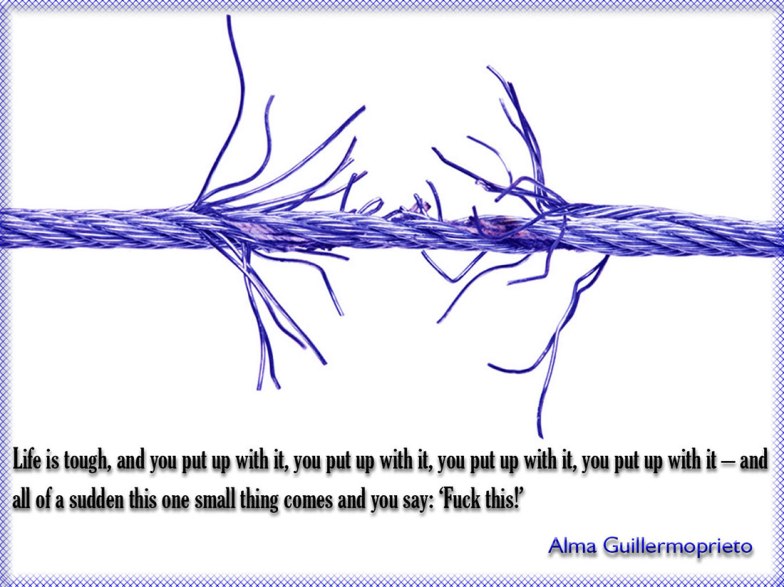 “Life is tough, and you put up with it, you put up with it, you put up with it, you put up with it – and all of a sudden this one small thing comes and you say: ‘Fuck this!’”