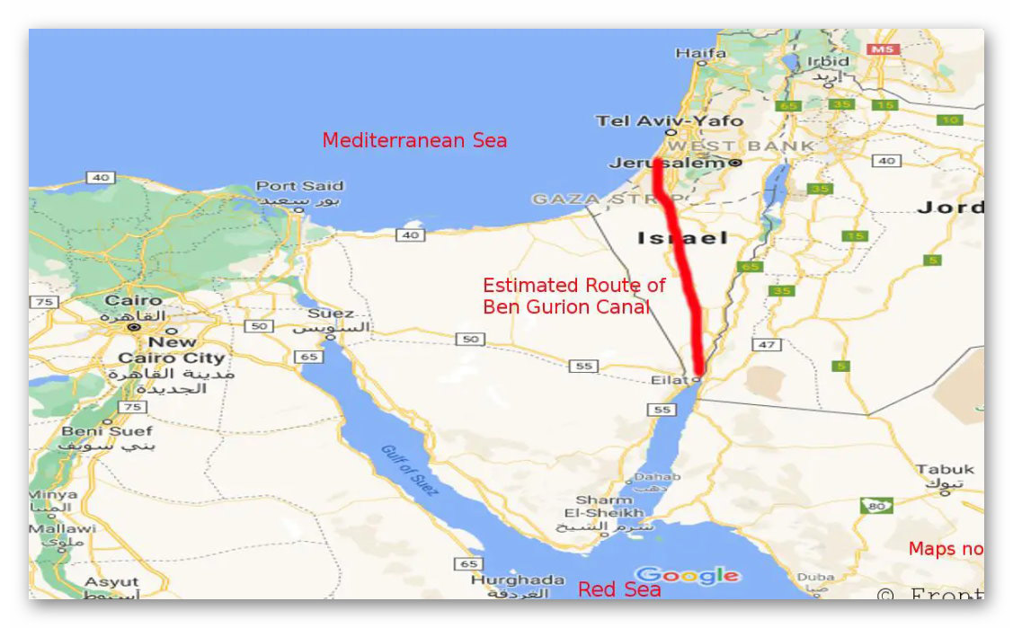 It is called the Ben Gurion Canal and goes from Eilat to Gaza. When finished it will become a real issue for the Suez Canal, with revenues estimated at six billion dollars annually.