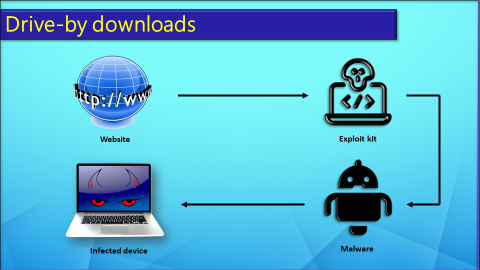 The attacker uses an Exploit Kit to exploit vulnerabilities in your system. The attacker does not need to have advanced computer knowledge to carry out this type of attack.
